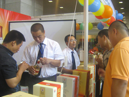 本次會(huì)展由河北省糖酒食品交易會(huì)組委會(huì)主辦,河北省食品工業(yè)協(xié)會(huì)協(xié)辦,邀請(qǐng)了河北省11地市23個(gè)縣級(jí)市、115個(gè)縣的經(jīng)銷商,商場(chǎng)和超市的采購(gòu)參加。我公司河北省級(jí)經(jīng)理李金輝,盒酒城市經(jīng)理王偉、史立新,河北市場(chǎng)助理王凈等代表我公司參加了本次會(huì)展。通過(guò)動(dòng)用噴繪布(4塊)、氣球(600個(gè))、品嘗臺(tái)(4個(gè))、試飲品(若干)、X展架(9個(gè))、招商手冊(cè)(若干)、投影儀、VCD、公放和音響等,在會(huì)展現(xiàn)場(chǎng)我公司營(yíng)造了很好的宣傳氛圍,同時(shí)三個(gè)突出的廣告位和布滿整個(gè)會(huì)場(chǎng)的流動(dòng)氣球,以及經(jīng)典的廣告專題片播放更進(jìn)一步強(qiáng)化了我們的宣傳效果,引來(lái)了不少客戶在我們的展位前駐足洽談。