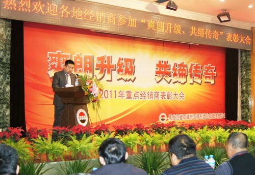 2011年5月11日在美麗的哈爾濱八一賓館,黑龍江省雙城市龍江家園酒業(yè)有限責(zé)任公司召開了"爽朗升級(jí)、共締傳奇"全國(guó)重點(diǎn)經(jīng)銷商表彰大會(huì),對(duì)一年來(lái)為龍江家園事業(yè)發(fā)展做出突出貢獻(xiàn)的經(jīng)銷商給予了重獎(jiǎng)。來(lái)自全國(guó)的263名重點(diǎn)經(jīng)銷商和營(yíng)銷中心銷售經(jīng)理以上級(jí)別人員歡聚一堂,共謀發(fā)展大計(jì)。