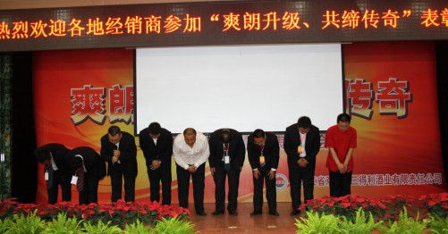 營(yíng)銷中心吳總發(fā)表了題為《突破思維、打破格局》的講話,他從產(chǎn)品升級(jí)、競(jìng)爭(zhēng)格局、渠道策略等方面進(jìn)行了闡述,為全體與會(huì)人員明確了下步工作方向。講話后,吳總帶領(lǐng)營(yíng)銷中心職能總監(jiān)和八大區(qū)經(jīng)理與經(jīng)銷商見面,并就感謝經(jīng)銷商的付出、服務(wù)中做的不足的地方給經(jīng)銷商鞠躬,博得了與會(huì)經(jīng)銷商長(zhǎng)時(shí)間的掌聲。