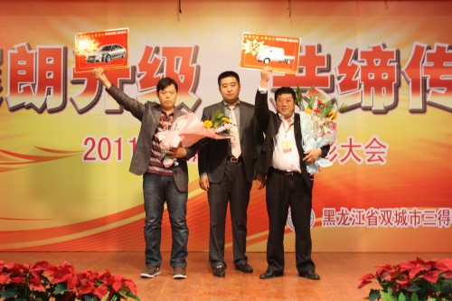 在12號(hào)下午的總結(jié)表彰大會(huì)上,龍江家園酒業(yè)集團(tuán)對(duì)2010年全國(guó)重點(diǎn)經(jīng)銷商進(jìn)行了辦公用品、貨車等重獎(jiǎng)。有近百名優(yōu)秀經(jīng)銷商獲獎(jiǎng),此次表彰人數(shù)之多、獎(jiǎng)品之豐厚在龍江家園表彰史上尚屬首次。